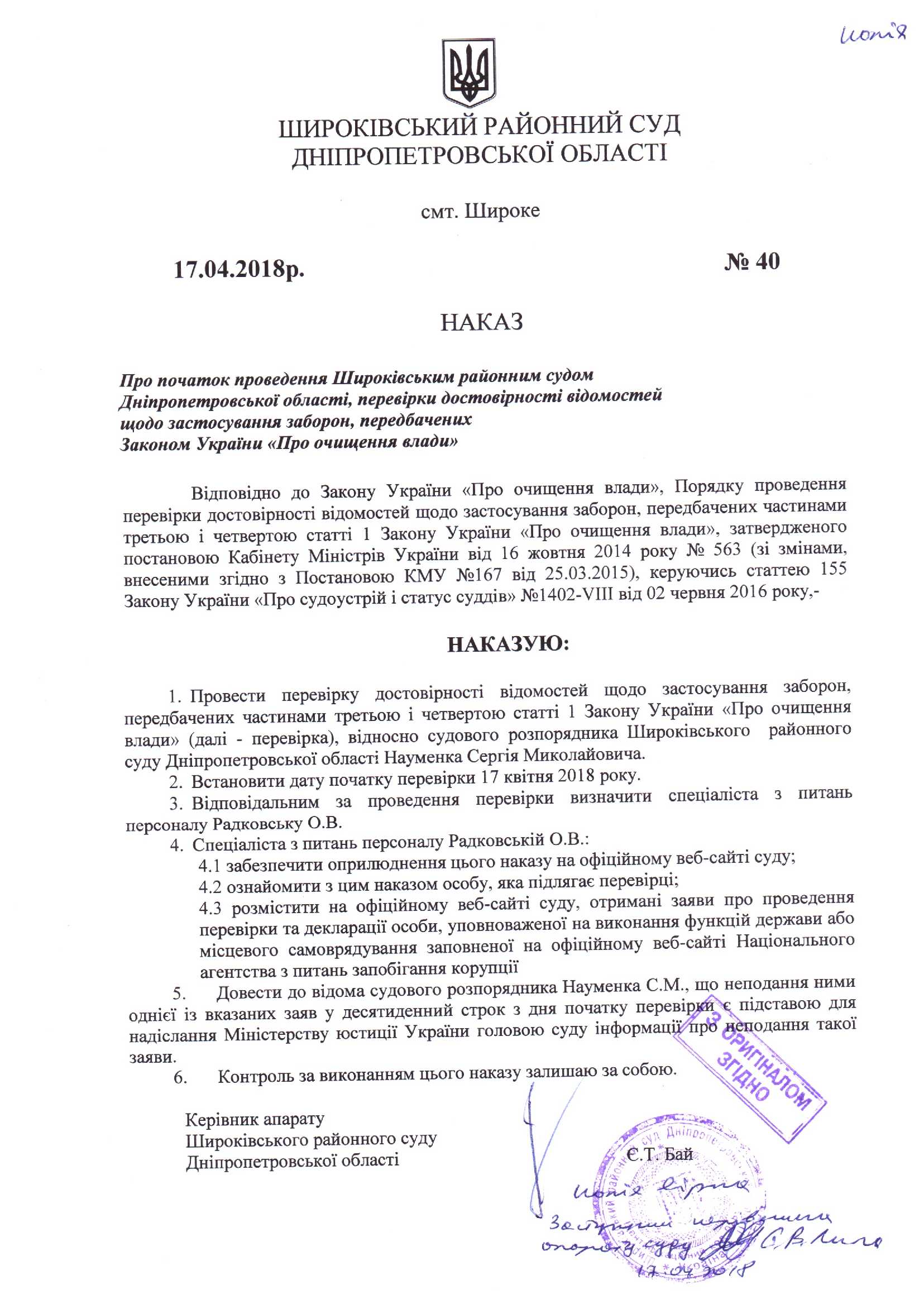 Про проведення перевірки відомостей щодо застосування заборон, передбачених Законом України «Про очищення влади»